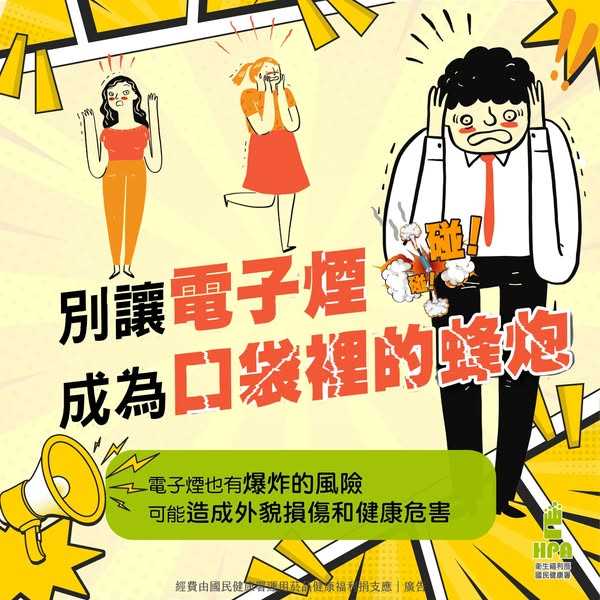 📌電子煙有爆炸的風險,可能造成外貌損傷和健康危害